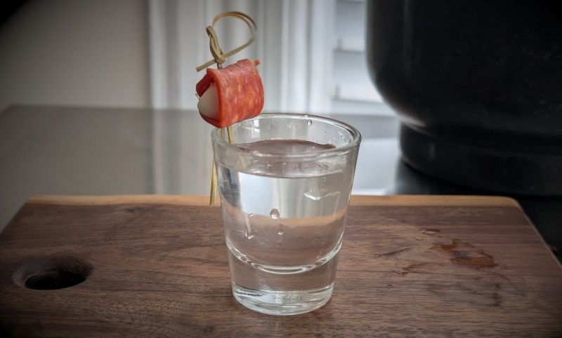 - 2 oz of equal parts mix of every clear liquor in the cabinet